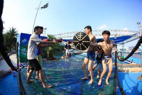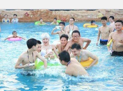 随着活动的进行,我们靓丽的COSER们下到泳池里,与现场玩家们进行水上互动游戏,现场玩家们大呼玩的过瘾!