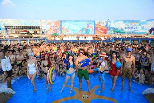 活动中我们安排了大量的泳池派对主题美女COSER、多种多样的互动游戏、激情洋溢的水友赛,同时还邀请到著名英雄联盟官方解说小訫亲临现场和玩家们一起互动,,给现场5000名玩家们带来了一场前所未有的水上LOL体验!