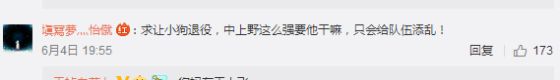 这名网友表示:求小狗退役,中上野那么强要他干嘛,只会给队伍添乱!