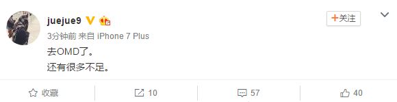 OMG打野选手JueJue在个人微博上表示“去OMD了,还有很多不足。”