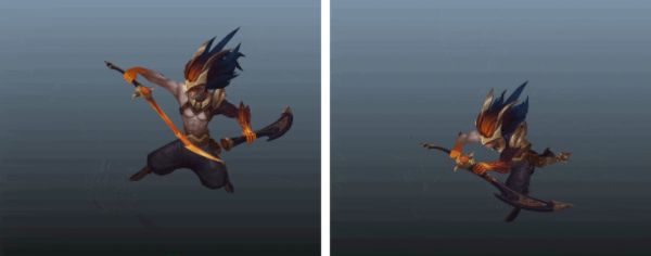 传说级皮肤的动画师在为已有的英雄创作新的动画时,常会碰到棘手的工作。棘手的程度通常由英雄的发布年份决定:越早期的英雄往往更容易打扮,但他们的设计配置也早早过时;而较新的英雄拥有较高质量的动画,但可能会很复杂且难以改进。