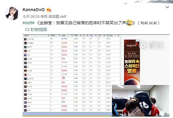 昨日,微博网友@KannaOvO将羊驼的直播做了录屏,直播期间Deft对着屏幕傻笑,并且低头无奈的摇了摇头。