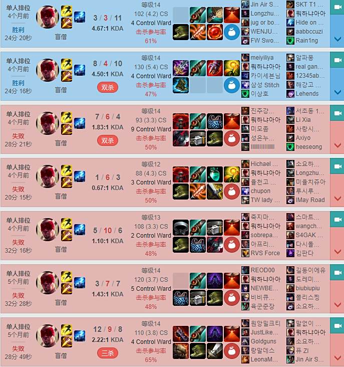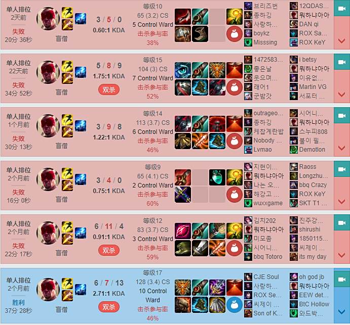 今晨我们特意查了一下Deft盲僧的rank胜率: