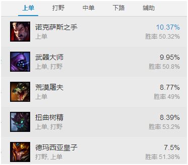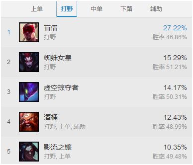 在韩服中,北地之怒胜率居然稳居首榜!这个让人不得不感到吃惊,为什么呢?我们再看看当今韩服打野登场率最高的英雄吧。