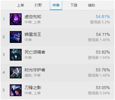 新数据,虚空先知重做后一直在中上路胜率榜单上很少落过,如今胜率却稳居首榜!可见上分怎么能少得了虚空先知呢!!