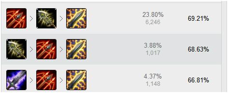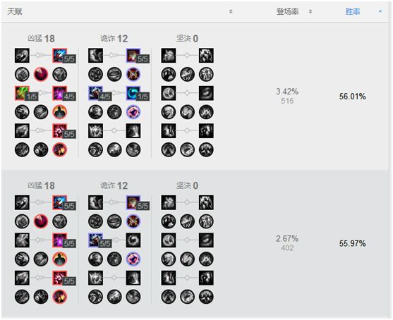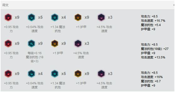 三个符文搭配都是胜率稳居前列的,可以看出差别不大,都是以高额攻速为主,其次是一些攻击力保证输出,最后是护甲魔抗,保证老鼠在对线和团战中不容易被切死,为老鼠提供很好的生存保障,过渡前期。
