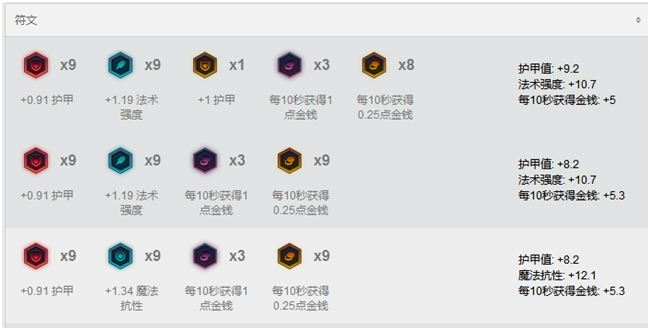三个胜率并列的符文配置,基本都是以增加法强护甲和金币为主,法强可以增加前中期风女E的护盾值,护甲和魔抗保证风女在对线和团战中的坦度,保证风女不会第一时间被对面针对杀死,金钱符文是为了让风女更好的发育出装,因为风女的作用更多在于辅助装备身上,因此辅助装备出得越快,游戏节奏越快,胜利越接近我们!