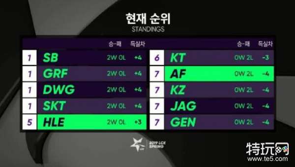 与之形成鲜明对比的是,在排行前列的队伍中有三幅新面孔。GRF加入LCK不满一年,SB、DWG也是2019年新加入LCK的队伍。但是初登LCK舞台,便展现出了极强的竞争力。