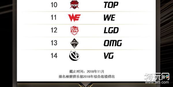 【腾讯电竞六大赛事联盟俱乐部排行榜】
