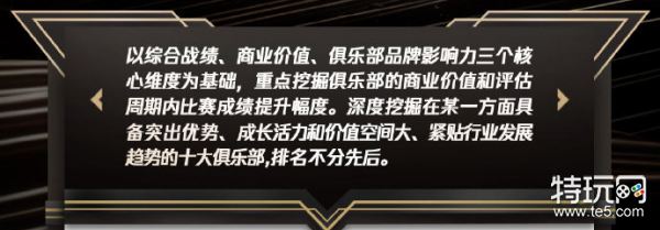 深度挖掘在某一方面具备突出优势、成长活力和价值空间大、紧贴行业发展趋势的十大俱乐部。