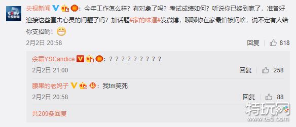 自古评论出大神。这不,央视新闻在余霜的微博下评论:今年工作怎么样?有对象了吗?考试成绩如何?听说你已经到家了,准备好迎接这些直击心灵的问题了吗?加话题#家的味道#发微博,聊聊你在家最怕被问啥,说不定有人给你支招哟!