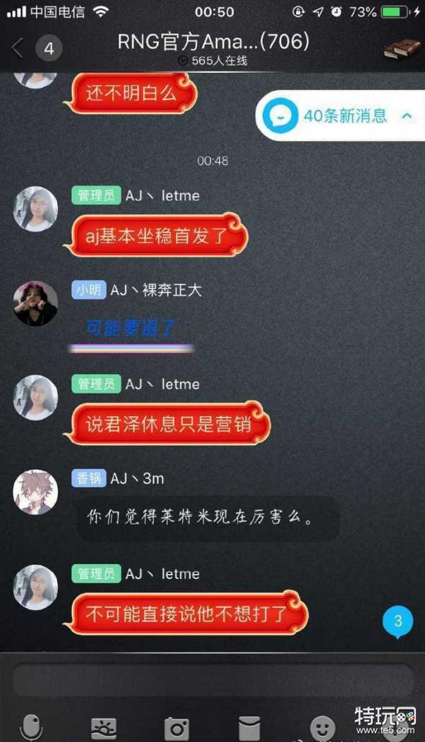 随着年后各大战队纷纷回归赛场,LPL的比赛形势也有了不小的变化,年前成绩不佳的战队在年后击败了前几名的战队,年前前几名的战队不少状态不佳还在调整的。其中作为LPL的人气战队,RNG在年后因为UZI的回归,战队士气大涨,目前三连胜,已经从中流排名冲到了LPL的前五名。在RNG的这几场比赛中,上单选手AJ和RNG的融合性意外的非常好,但是在2月20日凌晨,在RNG的粉丝群里,AJ的粉丝群管理员却公开爆料了其他选手的事情。