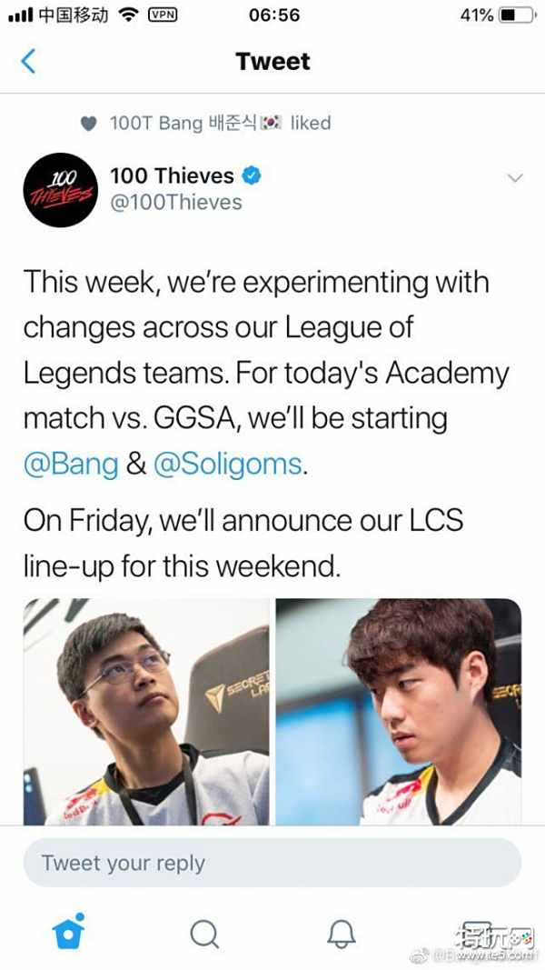 不过据了解了100T安排的粉丝们透露,Bang被下放很可能是为了培养与二队辅助stunt的默契。毕竟Bang算是100T内唯一正常的选手了。官方也发布消息表示,会在周五官宣周末LCS比赛的首发阵容。