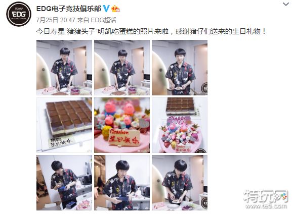 7月25日是EDG打野选手Clearlove明凯的生日,EDG官博分享明凯吃蛋糕的照片: