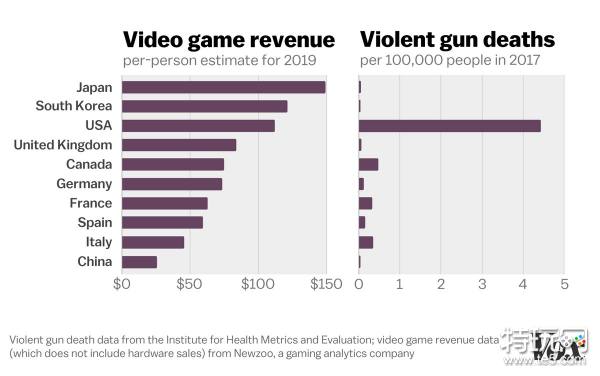 McSpocky用具体的数据说明:人均电子游戏占有榜中高于美国的有韩国和日本,而且其他国家之间的差距也并不大,但美国平均每年死于枪击案的人数却是几年来高居全世界第一,光在2017年。这说明电子游戏和暴力枪击事件并没有必然的联系。