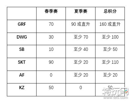 夏季赛冠军将作为一号种子保送S9,其他队伍中全年积分最高的将作为二号种子保送S9,剩余四支队伍以冒泡赛形式参加预选赛,决出三号种子。目前GRF确定进入S9,KZ确定参加预选赛,其余队伍都有可能保送S9或参加预选赛。