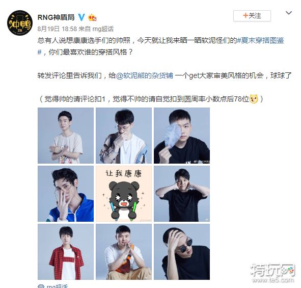 总有人说想康康选手们的帅照,今天就让我来晒一晒软泥怪们的#夏末穿搭图鉴#,你们最喜欢谁的穿搭风格?