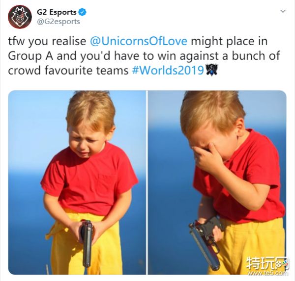 当你意识到UOL可能会在A组,你将不得不战胜一群粉丝最喜欢的战队的心情如图。(小孩悲伤)