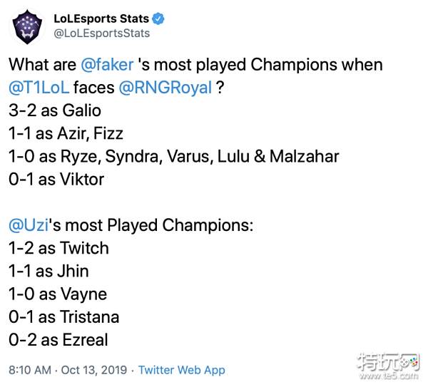 lolesports数据官推:Faker在面对RNG时最常用的英雄是?