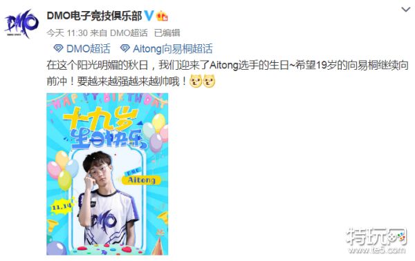 在这个阳光明媚的秋日,我们迎来了Aitong选手的生日~希望19岁的向易桐继续向前冲!要越来越强越来越帅哦!