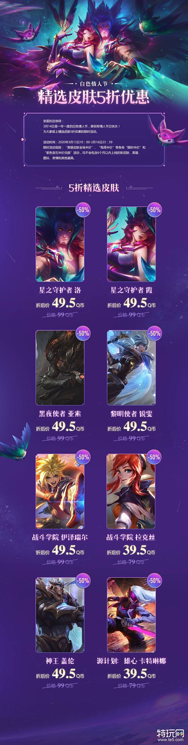 恭祝有情人节日快乐!英雄联盟也为大家献上了精选皮肤5折优惠的限时活动