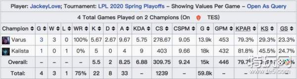 虽然Jackeylove出场次数并不多,但是当前版本能用的AD它都能玩,且都打出了不错的数据,TES的下路不会受限于BP了,对手也不好做针对了。