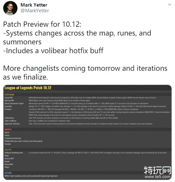 今天拳头设计师MarkYetter更新了10.12版本的改动计划,并表示会对沃利贝尔进行一个紧急性的加强: