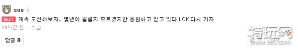 继续挑战试试看吧...虽然不知道要花费几年的时间,但还是支持和相信你们,LCK再次雄起吧!