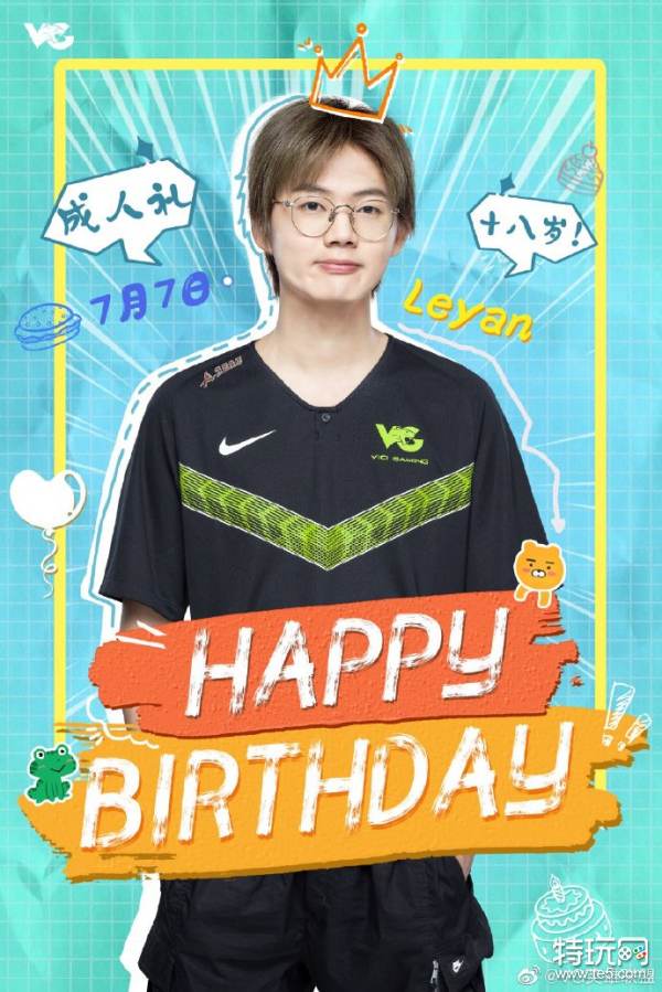 今天是VG英雄联盟分部打野选手卢崛Leyan的18岁生日,祝@小乐言Oo 成年快乐!
