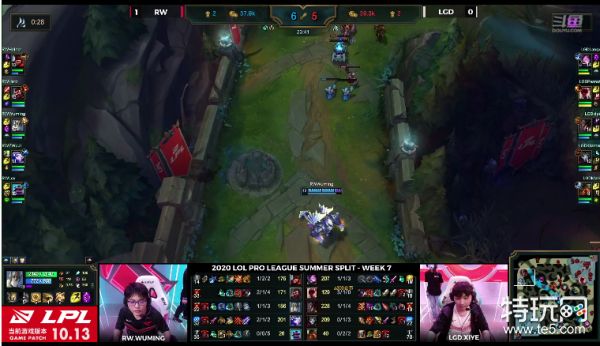 [22:15] 卡牌大招来到中路,反遭艾希Q技能猛射,RW其余人杀到战场。然后,LGD先后损失卡牌和泰坦。