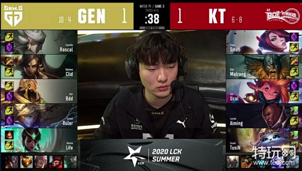 双方bo3第三局,蓝色方GEN,红色方KT。