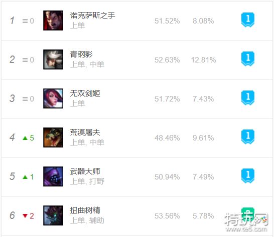 此外,通过峡谷相对论,大家都被削弱时我不被削弱 = 我被加强了,青钢影也是悄然登上了路人上单 T1 的位置。