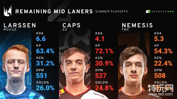 以上便是对三位中单选手的简单数据对比,最后LEC的冠军究竟花落谁家?是G2拿到他们队史第8冠还是FNC在Caps走后第一次回归王座,亦或是RGE打破自15年来G2、FNC对LEC(LCS EU)的冠军垄断,就让我们拭目以待吧!