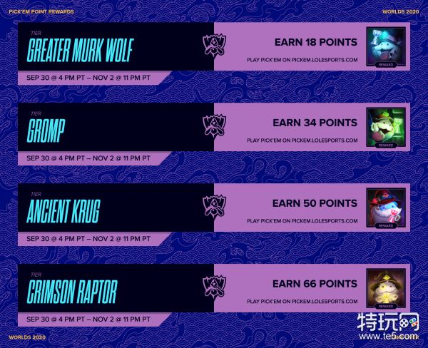 今年的预测活动和往年一样从小组赛阶段开始,包括小组赛的排名预测和淘汰赛的胜者预测。无论预测正确与否,参与的玩家都能在赛事的不同阶段获得从蓝色精粹到魔法引擎的不同奖励。预测正确会给玩家带来积分,当玩家的积分达到一定数量的时候,就会解锁新的限定头像。