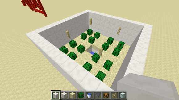 周围再铺3格高的方块,在仙人掌中央上方第三格放上栅栏,(利用仙人掌的碰撞箱原理用栅栏直接把长出来的挤掉)