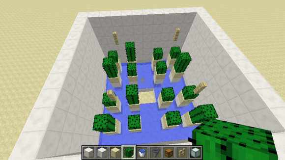造一个离地面2格的12X12的平台,四周围上,角落倒水,中间空四格