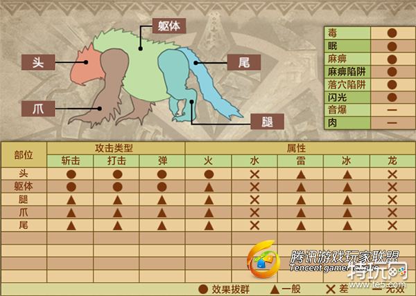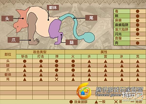 站在侧面击打爪子和后脚为主,出现倒地或硬直时放心的打头,破头后就会使桃毛进入一段时间的萎靡期,表现为速度变慢,攻击频率减少。