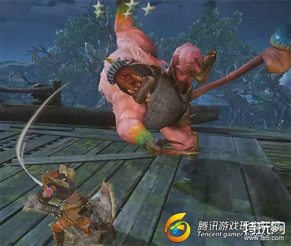原地吐火,二连甩尾,前跳啄地等等招数基本都打不中猎人,最危险的招只有鸟车