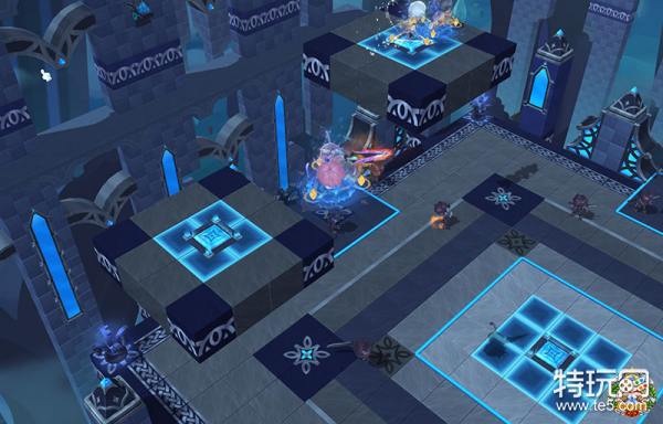 第二阶段玩家将在狭小的空间中进行,此时需要玩家占据地图中的四角位置,跳跃到第二层平台同时踩下机关才能触发副本内容清除小怪后玩家进入小BOSS房间。