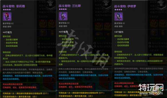 全新战斗宠物相对于老版本宠物除了自带4个能力外加宠物技能外,在宠物技能栏上统一多出一条技能:玩家战斗力提升150点。