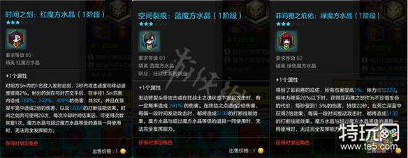 菲莉雅之庇佑——绿色魔方水晶、空间裂痕——蓝色魔方水晶、时间之剑——红色魔方水晶。