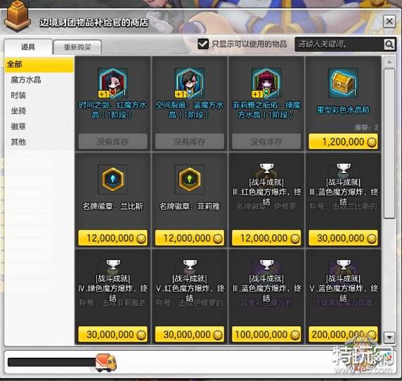 ①.每周通过地图魔方之眼的NPC——边境财团补给官可分别购买红、蓝、绿魔方水晶一个。