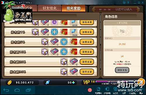 武陵道场只有排名在90%以内才可以获得奖励。而排名910%的奖励只是简单的普通扭蛋卷和强化卷V,这些对目前的玩家来说是没有多大用途的,非要说有用那就是扭蛋卷了,但是一个星期一次的奖励,你还能指望这个十连抽?