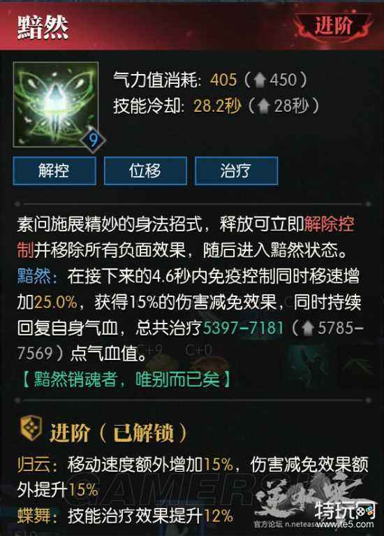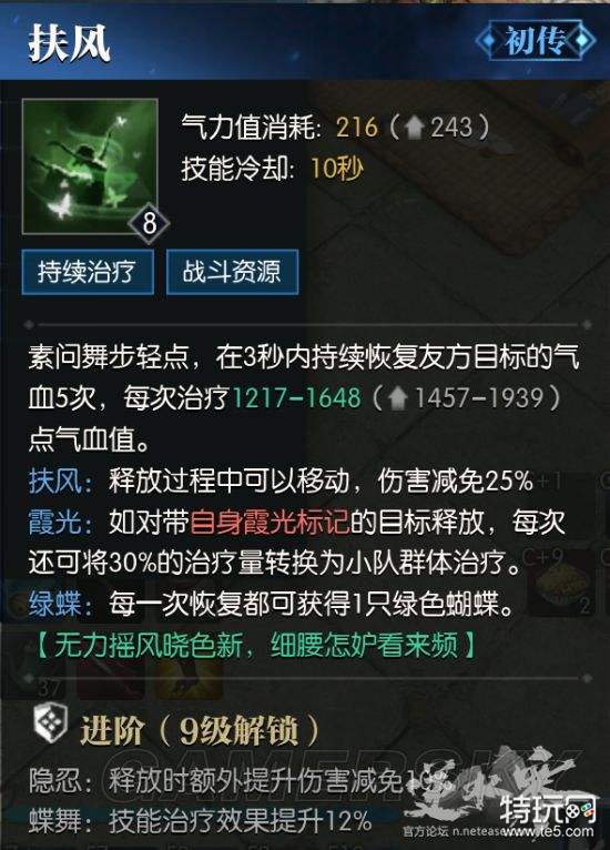 解读:素问唯一可进阶心法技能。主提升奶量,回蓝速度,附带提升伤害。可缓解奶不够,蓝不够的问题。进阶后附送受控伤害略微减免,简直良心!