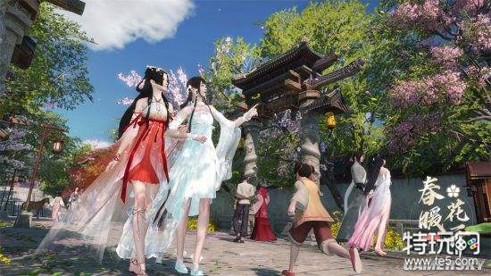不仅场景发生了真实而微妙的变化,花草树木也纷纷发芽开花,处处春意黯然,生机萌动。而且就连光照,也会相对调整成更加强烈饱和的春日艳阳,确确实实是一个会呼吸的江湖。