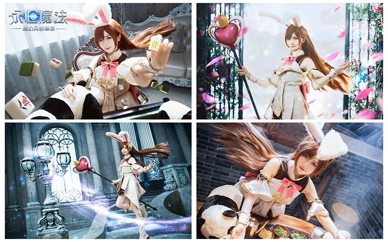 游戏中,萌宠丘比兔以其可爱的外观被玩家们奉为女神,而本次周年庆,《永恒魔法》发布全新丘比兔cos写真,魔法界最美兔女郎今日C位出道!由国内知名人气coser雪雪倾情完美还原,丘比兔从原本天真稚气的萌宠蜕变成青春可人的萌系少女,精致五官加上绝佳的身材,这样的福利绝对能让玩家怦然心动!写真中,丘比兔带领玩家穿越成都的大街小巷,品尝特色四川火锅、畅玩四川麻将,来一次魔法与川味的奇遇。火锅、麻将、熊猫等四川特色元素的融入,让大家着实领略了一番四川风味。
