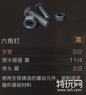 六角钉是制作武器的材料。