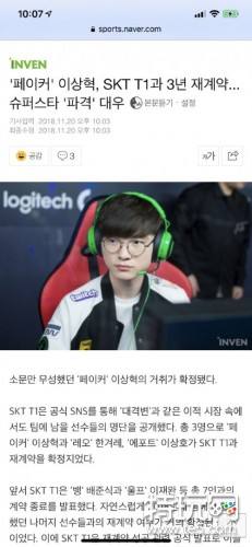 同时根据韩媒报道,SKT与Faker签订的续约合同时间为三年。