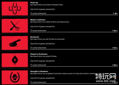不过根据曝光的Xbox成就页面显示,现在已经有人开始玩上《大镖客OL》了。我们能看到这些成就显示有0.01%的玩家达成了成就,虽然人数看起来很少,但显然这意味着R星已经进行了《大镖客OL》的测试,而且游玩时还能够正常获得奖杯,相信距离它推出的日子不远了。而未来几天,R星很可能会来一次“突然袭击”,公布关于线上模式的海量情报内容。