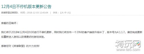 LOL12月4日不停机版本更新公告 更新时间介绍